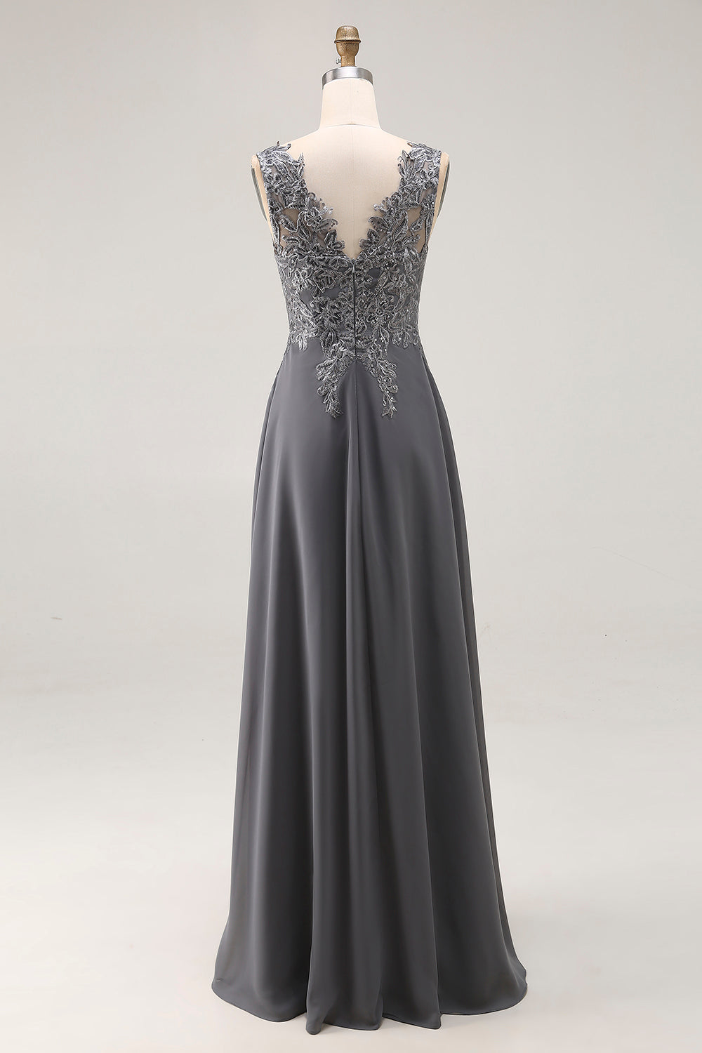 Charcoal A Line Lace V-Neck Long Mother of the Bride Dress with Appliques