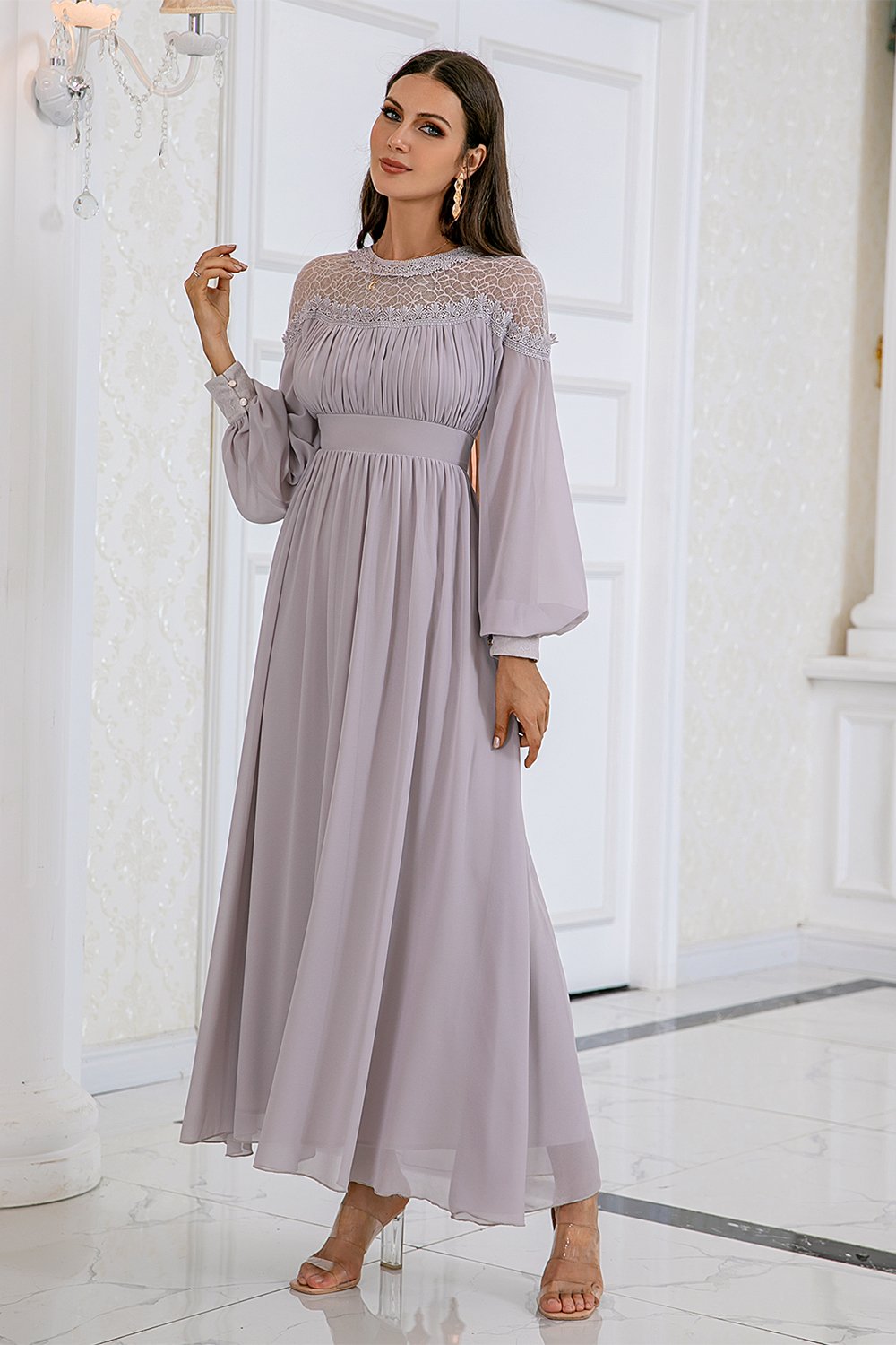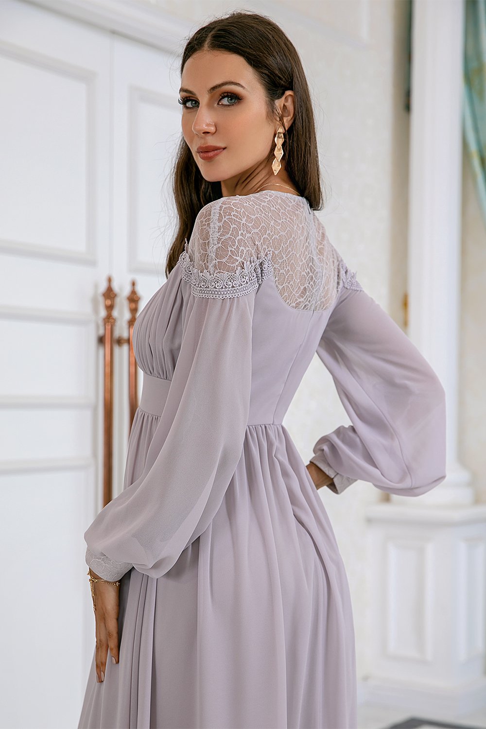 Grey Long Sleeves Chiffon Wedding Party Dress