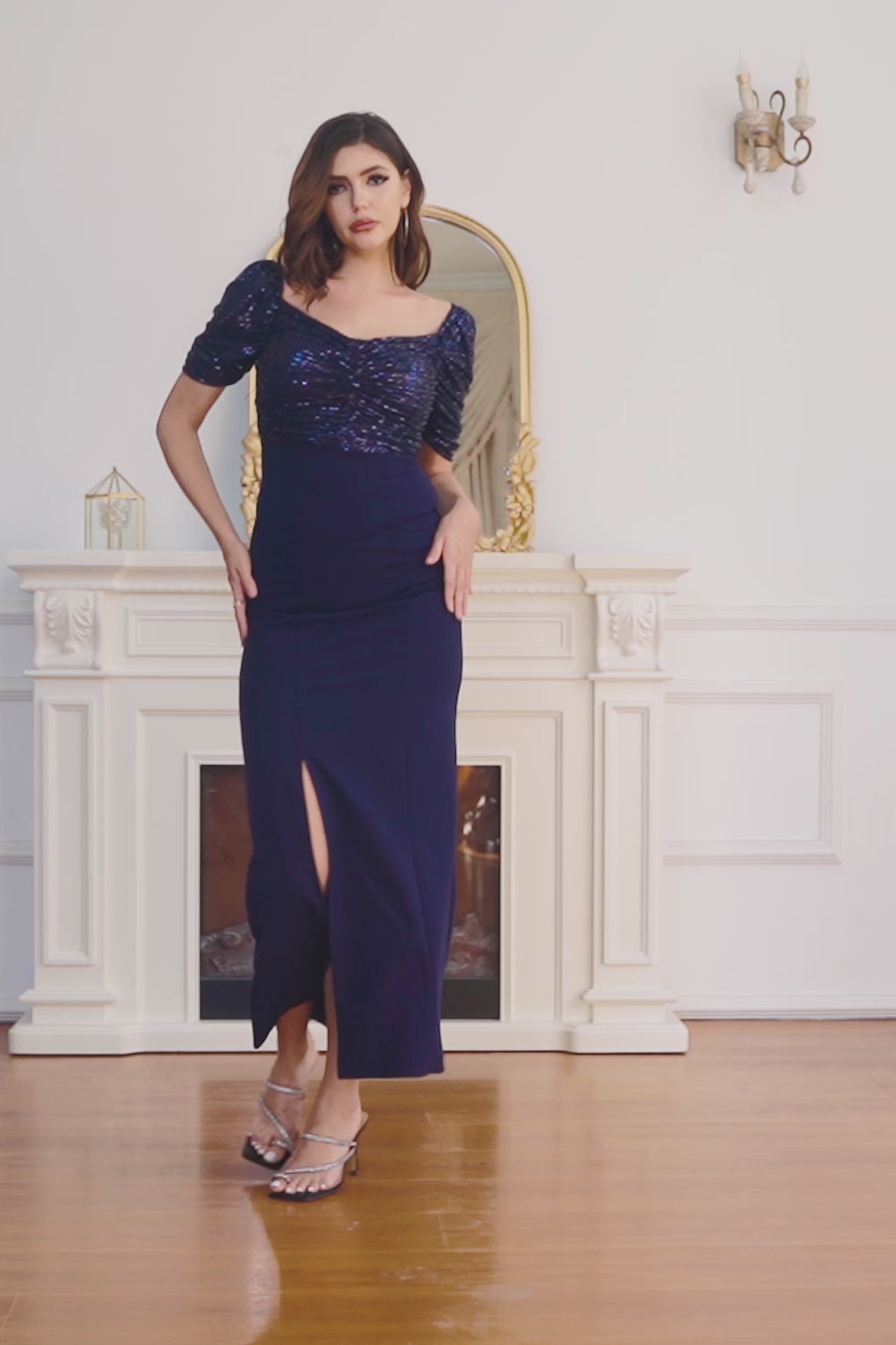 Navy Mother of the Bride Dress with Slit