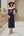 Navy 2 Pieces Printed Satin A Line Midi Mother of the Bride Dress