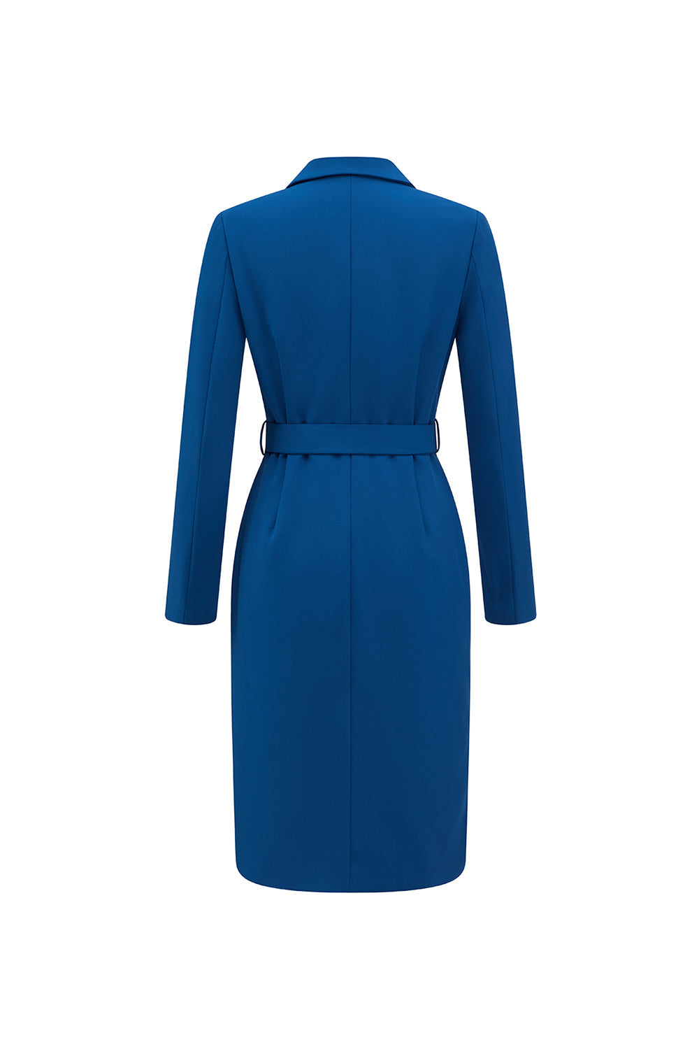Ink Blue Notched Lapel Double Breasted Blazer Dress with Belt