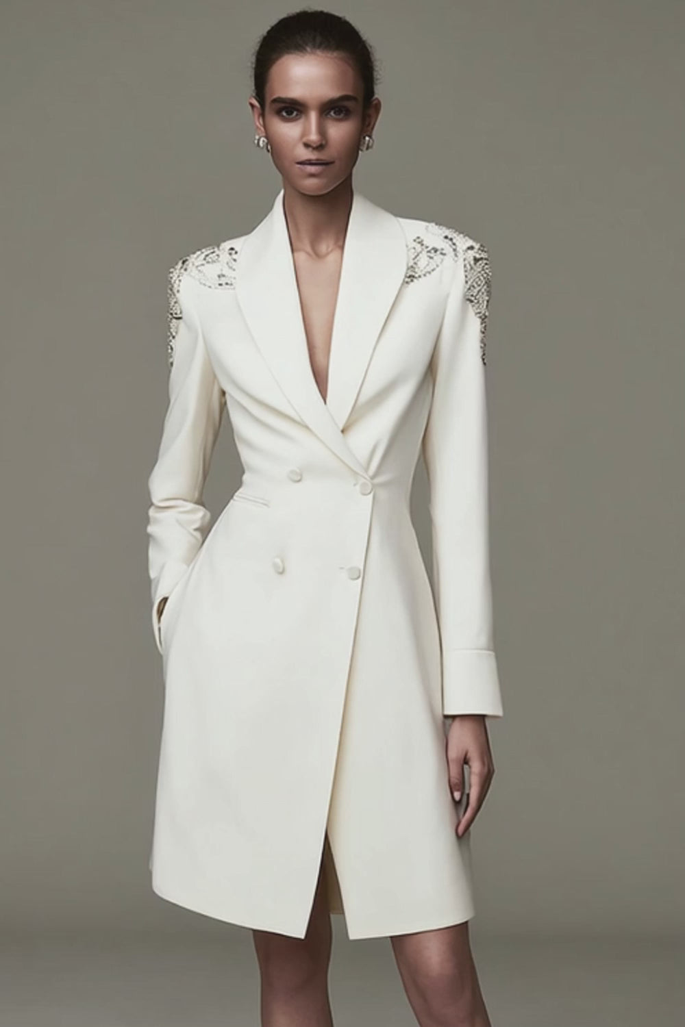 Sparkly Ivory Shawl Lapel Short Work Dress with Sleeves