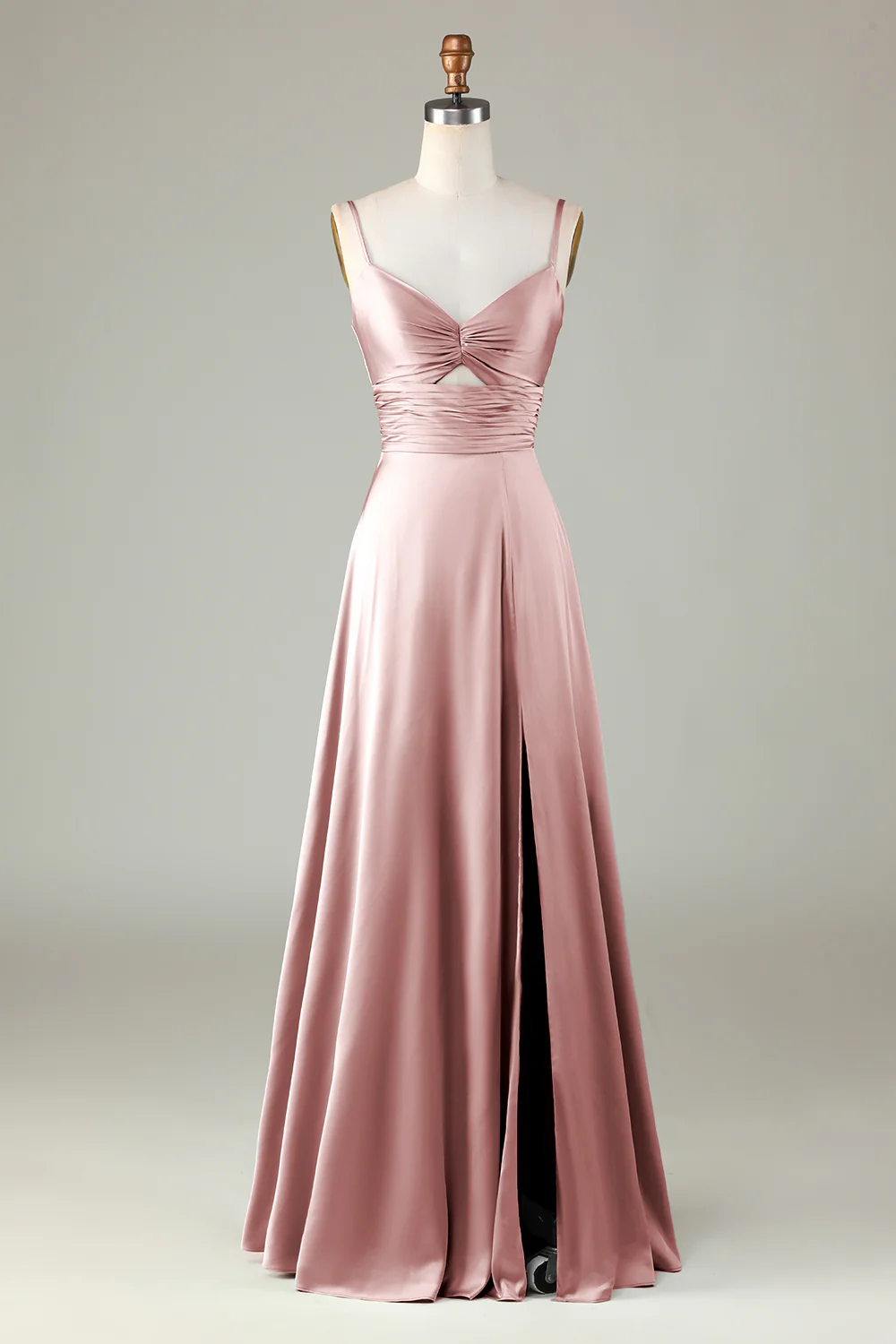Olive A Line Spaghetti Straps Floor Length Bridesmaid with Slit