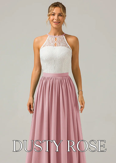 Dusty Blue A Line Halter Cut Out Long Bridesmaid Dress with Flower