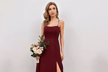 Spaghetti Straps Burgundy Long Bridesmaid Dress with Slit