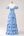 White Blue Flower Mermaid Print Maxi Wedding Party Guest Dress with Slit