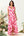 A Line V Neck Pink Flower Printed Long Bridesmaid Dress with Ruffles
