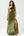 Olive V Neck Satin Sheath Wedding Guest Dress with Ruffles