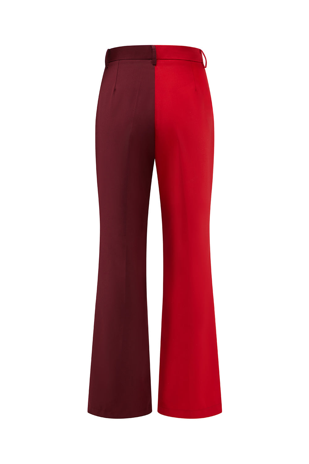 2-Piece Red Patchwork Notched Lapel Women Prom Suits with Belt
