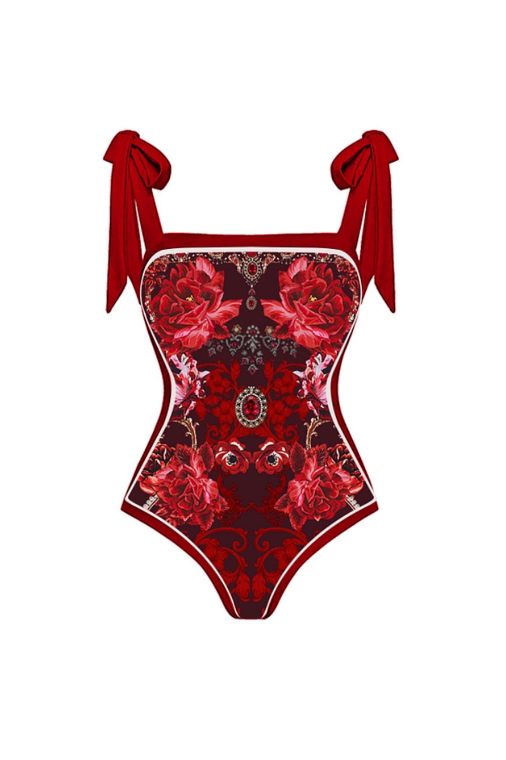 2 Piece Spaghetti Straps Black Red Floral Swimsuit with Cover Up