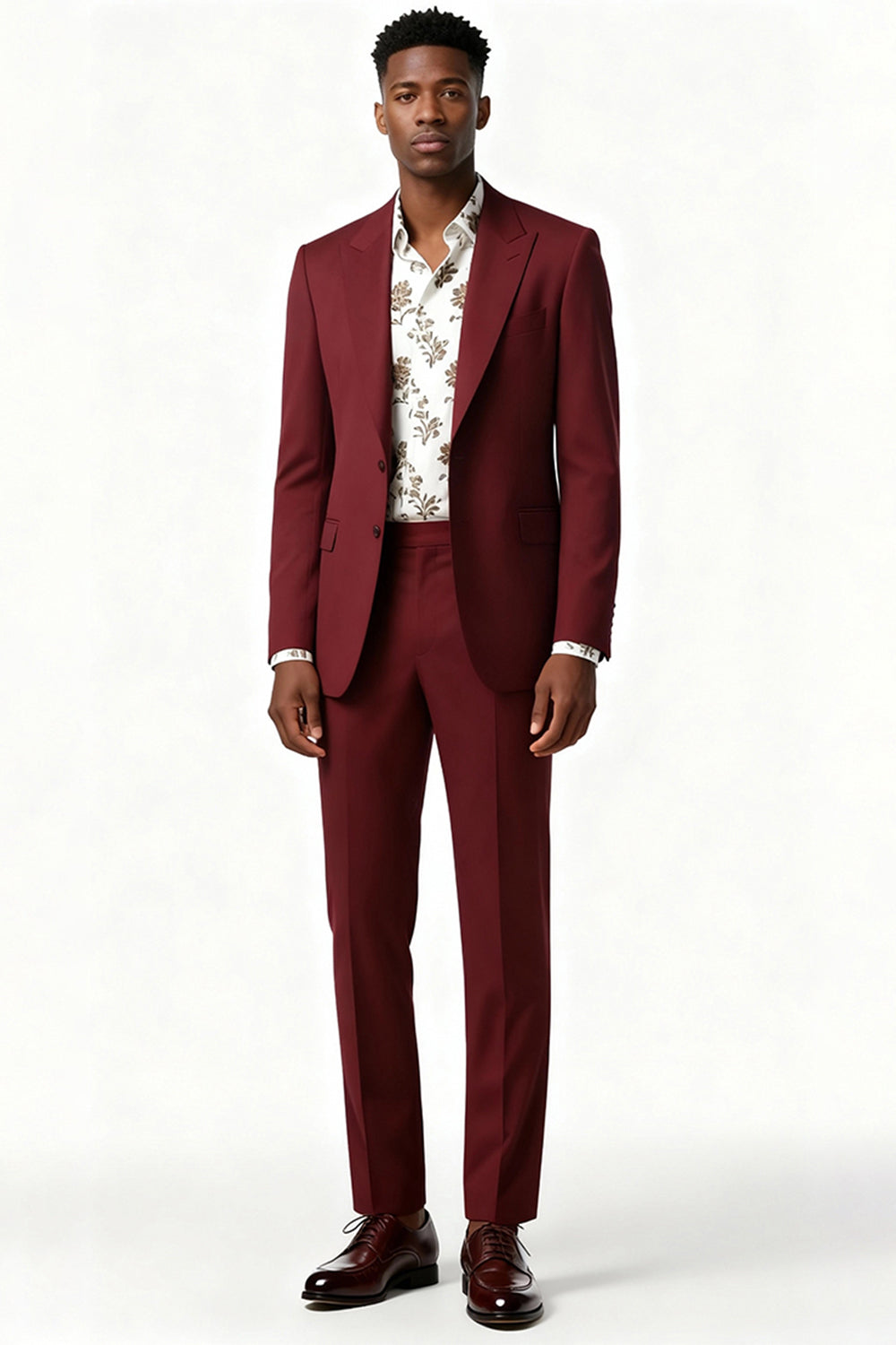 Burgundy Peak Lapel 2 Piece Single Breasted Men Suits