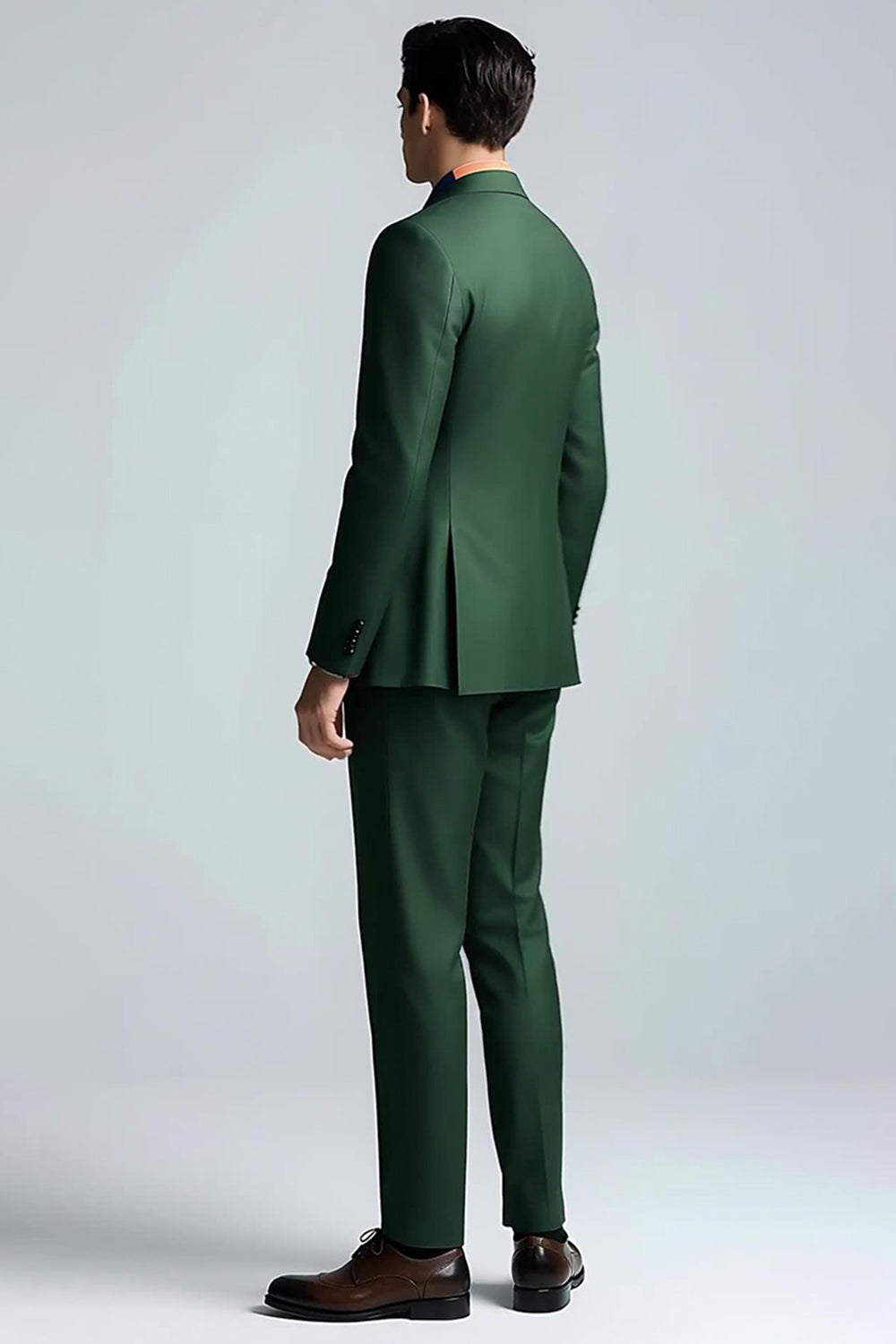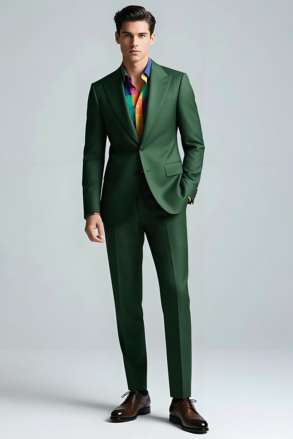 Dark Green Peak Lapel 2 Piece Slim Fit Prom Suits