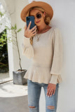 Khaki Waisted Long Sleeve Knitted Cardigan